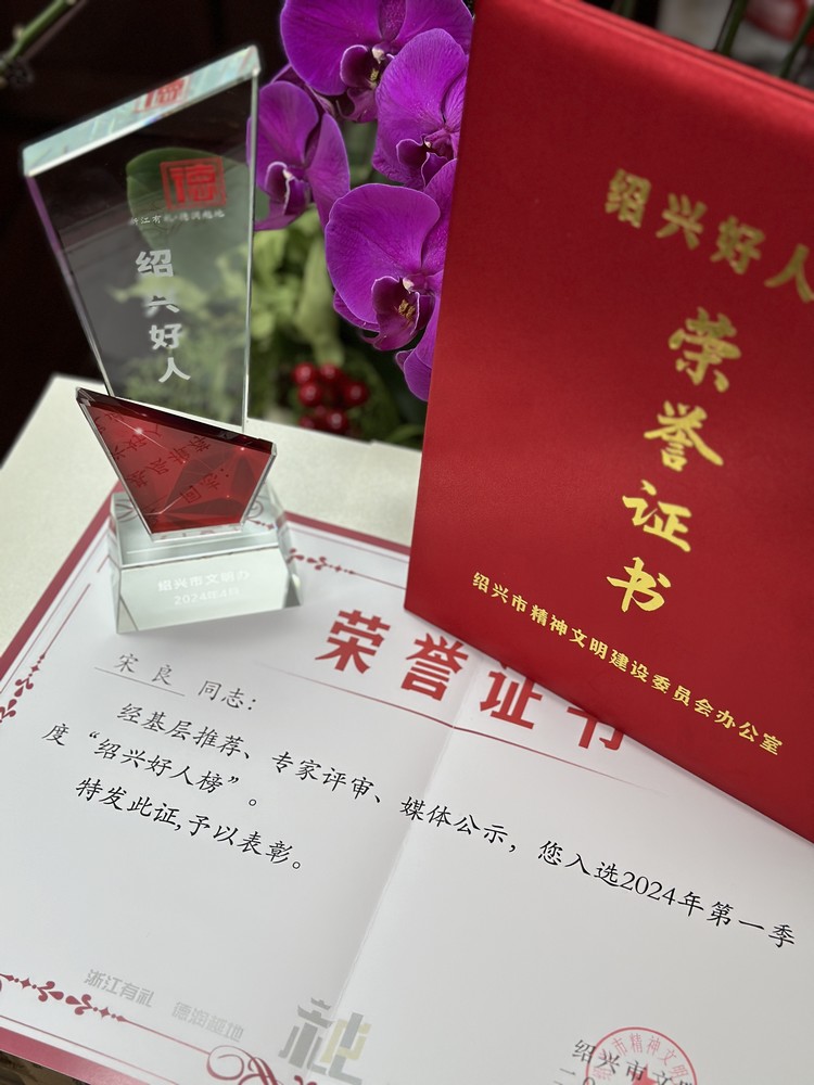 我司董事長、黨委書記宋良同志獲評“紹興好人”