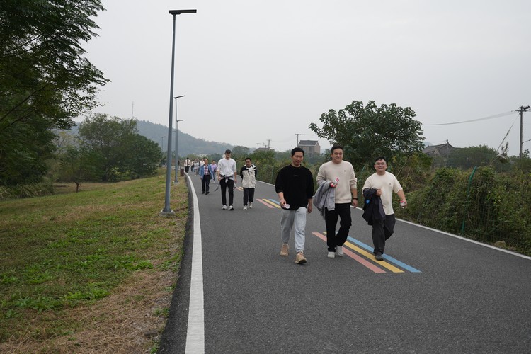 活動(dòng)伊始,隨著范總的一聲令下,110名環(huán)宇員工踏上了10公里的徒步旅程。上午的皂李湖空氣清新,陽光微微透過云層灑在蜿蜒的小徑上,為徒步者們提供了一個(gè)宜人的徒步環(huán)境。沿途的自然風(fēng)光和清新空氣讓參與者們精神振奮,他們或三五成群,或獨(dú)自前行,但都保持著積極向上的態(tài)度。設(shè)立的四個(gè)補(bǔ)給點(diǎn)不僅為參與者提供了必要的水分和能量補(bǔ)給,也成為了大家短暫休息和交流的場(chǎng)所。在這里,大家分享著徒步的樂趣,交流著工作與生活的點(diǎn)滴,增進(jìn)了同事間的友誼。