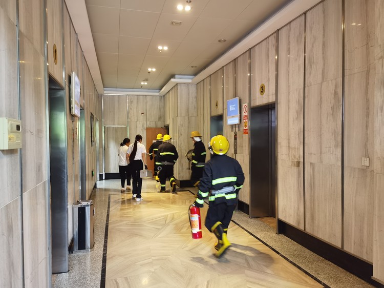 本次演練圍繞“安全為基,防患未‘燃’”為主題,演練模擬了寫字樓內(nèi)發(fā)生火災(zāi)和乘梯人員被困的情景,參與人員通過不同角色的代入,有序進行了應(yīng)急疏散、微型消防站救援、消防器材實操及高層電梯故障救援四部分內(nèi)容。現(xiàn)場邀請維保單位工作人員進行了專業(yè)的操作講解,通過理論+實踐雙軌并進。